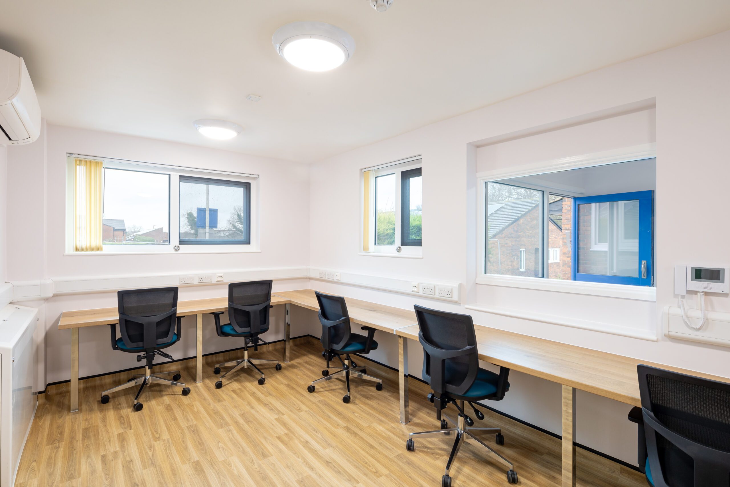 Thoughtfully designed for dignity and safety in mind, this complete refurbishment delivered a calm, modern and secure environment tailored to the needs of mental health care. Every element, from soft pastel wall tones and durable natural finishes, to anti-ligature furniture and vibrant artwork, has been selected to support wellbeing, safety and therapeutic engagement.